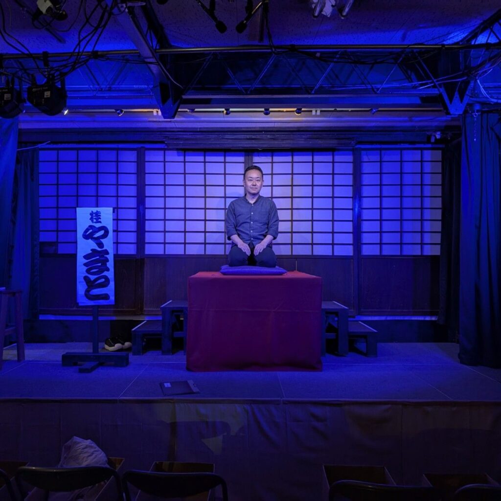 文房具たまのや。その店内を大改装して出来上がった『たまのや演芸場』。私の独演会を自宅で開催し続けるためにここまでしてくださった、店長でお席亭の市川直久さん。